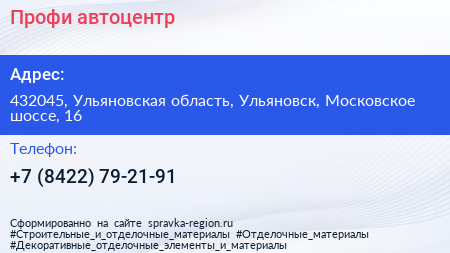 Профи, автоцентр по адресу 432045, Ульяновская область, Ульяновск, Московское шоссе, 16 в дальнейшем Организация, размещена в следующих категориях: