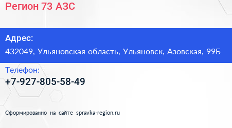 Регион 73, АЗС по адресу 432049, Ульяновская область, Ульяновск, Азовская, 99Б в дальнейшем Организация, размещена в следующих категориях:
