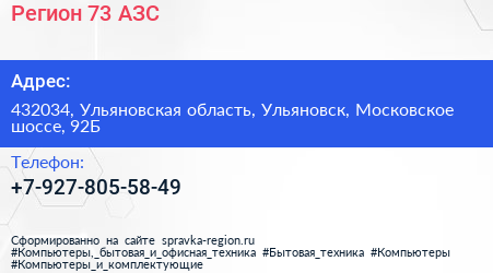 Регион 73, АЗС по адресу 432034, Ульяновская область, Ульяновск, Московское шоссе, 92Б в дальнейшем Организация, размещена в следующих категориях: