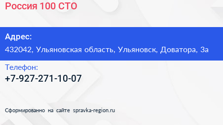 Россия-100, СТО по адресу 432042, Ульяновская область, Ульяновск, Доватора, 3а в дальнейшем Организация, размещена в следующих категориях: