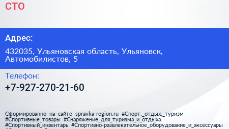 СТО по адресу 432035, Ульяновская область, Ульяновск, Автомобилистов, 5 в дальнейшем Организация, размещена в следующих категориях: