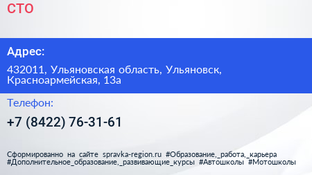 СТО по адресу 432011, Ульяновская область, Ульяновск, Красноармейская, 13а в дальнейшем Организация, размещена в следующих категориях:
