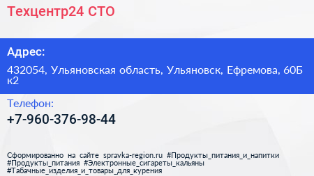 Техцентр24, СТО по адресу 432054, Ульяновская область, Ульяновск, Ефремова, 60Б к2 в дальнейшем Организация, размещена в следующих категориях: