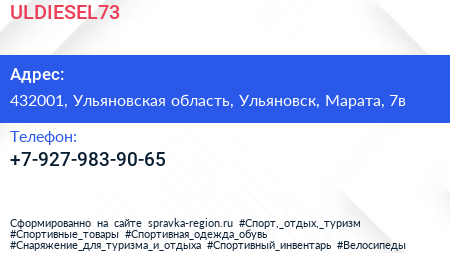 ULDIESEL73 по адресу 432001, Ульяновская область, Ульяновск, Марата, 7в в дальнейшем Организация, размещена в следующих категориях: