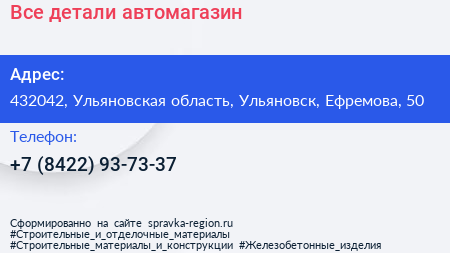Все детали, автомагазин по адресу 432042, Ульяновская область, Ульяновск, Ефремова, 50 в дальнейшем Организация, размещена в следующих категориях: