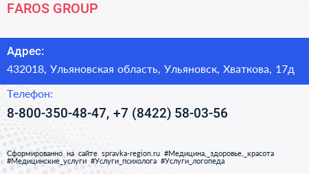 FAROS GROUP по адресу 432018, Ульяновская область, Ульяновск, Хваткова, 17д в дальнейшем Организация, размещена в следующих категориях:
