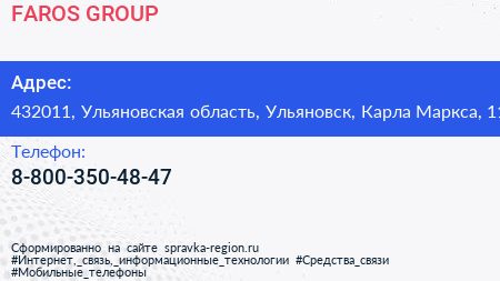 FAROS GROUP по адресу 432011, Ульяновская область, Ульяновск, Карла Маркса, 11 в дальнейшем Организация, размещена в следующих категориях:
