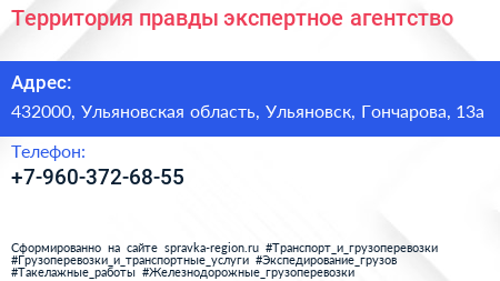Территория правды, экспертное агентство по адресу 432000, Ульяновская область, Ульяновск, Гончарова, 13а в дальнейшем Организация, размещена в следующих категориях: