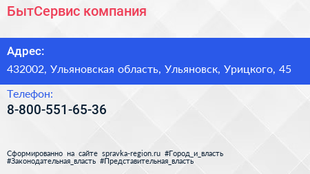 БытСервис, компания по адресу 432002, Ульяновская область, Ульяновск, Урицкого, 45 в дальнейшем Организация, размещена в следующих категориях: