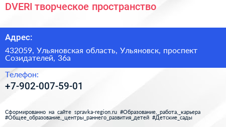 DVERI, творческое пространство по адресу 432059, Ульяновская область, Ульяновск, проспект Созидателей, 36а в дальнейшем Организация, размещена в следующих категориях: