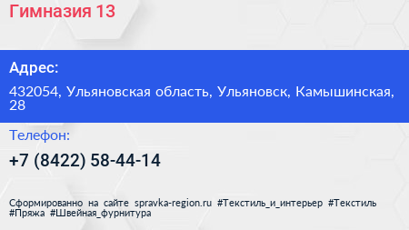 Гимназия №13 по адресу 432054, Ульяновская область, Ульяновск, Камышинская, 28 в дальнейшем Организация, размещена в следующих категориях: