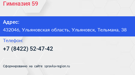 Гимназия №59 по адресу 432046, Ульяновская область, Ульяновск, Тельмана, 38 в дальнейшем Организация, размещена в следующих категориях:
