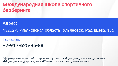 Международная школа спортивного барберинга по адресу 432027, Ульяновская область, Ульяновск, Радищева, 156 в дальнейшем Организация, размещена в следующих категориях: