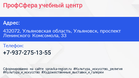 ПрофСфера, учебный центр по адресу 432072, Ульяновская область, Ульяновск, проспект Ленинского Комсомола, 33 в дальнейшем Организация, размещена в следующих категориях: