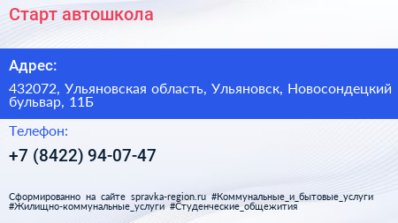Старт, автошкола по адресу 432072, Ульяновская область, Ульяновск, Новосондецкий бульвар, 11Б в дальнейшем Организация, размещена в следующих категориях: