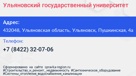 Ульяновский государственный университет по адресу 432048, Ульяновская область, Ульяновск, Пушкинская, 4а в дальнейшем Организация, размещена в следующих категориях: