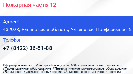 Пожарная часть №12 по адресу 432023, Ульяновская область, Ульяновск, Профсоюзная, 5 в дальнейшем Организация, размещена в следующих категориях: