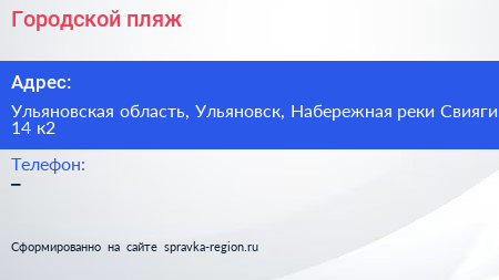 Городской пляж по адресу Ульяновская область, Ульяновск, Набережная реки Свияги, 14 к2 в дальнейшем Организация, размещена в следующих категориях: