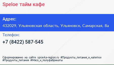 Speloe, тайм-кафе по адресу 432029, Ульяновская область, Ульяновск, Самарская, 8а в дальнейшем Организация, размещена в следующих категориях: