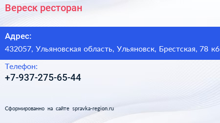 Вереск, ресторан по адресу 432057, Ульяновская область, Ульяновск, Брестская, 78 к6 в дальнейшем Организация, размещена в следующих категориях: