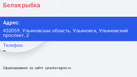 Белая рыбка по адресу 432059, Ульяновская область, Ульяновск, Ульяновский проспект, 2 в дальнейшем Организация, размещена в следующих категориях: