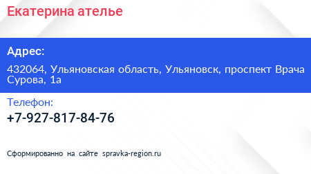Екатерина, ателье по адресу 432064, Ульяновская область, Ульяновск, проспект Врача Сурова, 1а в дальнейшем Организация, размещена в следующих категориях: