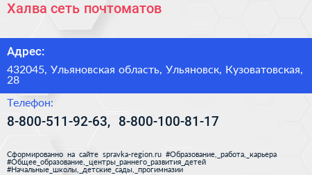 Халва, сеть почтоматов по адресу 432045, Ульяновская область, Ульяновск, Кузоватовская, 28 в дальнейшем Организация, размещена в следующих категориях: