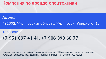 Компания по аренде спецтехники по адресу 432002, Ульяновская область, Ульяновск, Урицкого, 15 в дальнейшем Организация, размещена в следующих категориях: