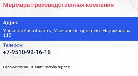 Мармара, производственная компания по адресу Ульяновская область, Ульяновск, проспект Нариманова, 115 в дальнейшем Организация, размещена в следующих категориях: