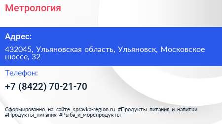 Метрология по адресу 432045, Ульяновская область, Ульяновск, Московское шоссе, 32 в дальнейшем Организация, размещена в следующих категориях: