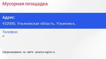 Мусорная площадка по адресу 432000, Ульяновская область, Ульяновск, в дальнейшем Организация, размещена в следующих категориях:
