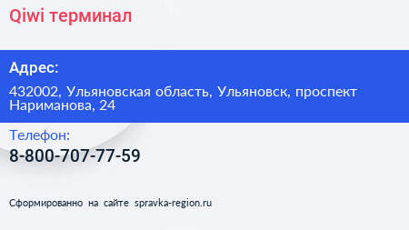 Qiwi, терминал по адресу 432002, Ульяновская область, Ульяновск, проспект Нариманова, 24 в дальнейшем Организация, размещена в следующих категориях: