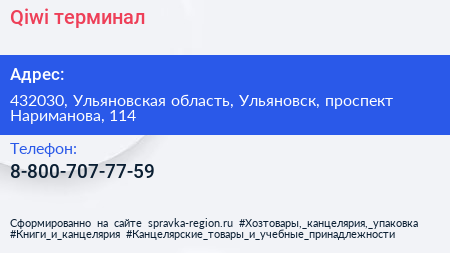 Qiwi, терминал по адресу 432030, Ульяновская область, Ульяновск, проспект Нариманова, 114 в дальнейшем Организация, размещена в следующих категориях: