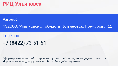 РИЦ-Ульяновск по адресу 432000, Ульяновская область, Ульяновск, Гончарова, 11 в дальнейшем Организация, размещена в следующих категориях: