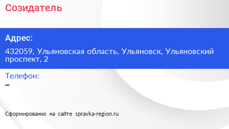 Созидатель по адресу 432059, Ульяновская область, Ульяновск, Ульяновский проспект, 2 в дальнейшем Организация, размещена в следующих категориях: