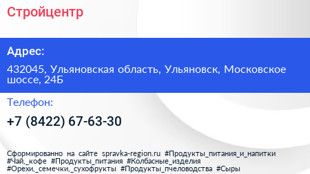 Стройцентр по адресу 432045, Ульяновская область, Ульяновск, Московское шоссе, 24Б в дальнейшем Организация, размещена в следующих категориях: