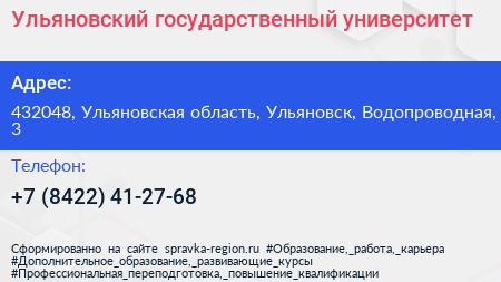 Ульяновский государственный университет по адресу 432048, Ульяновская область, Ульяновск, Водопроводная, 3 в дальнейшем Организация, размещена в следующих категориях:
