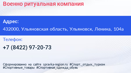 Военно-ритуальная компания по адресу 432000, Ульяновская область, Ульяновск, Ленина, 104а в дальнейшем Организация, размещена в следующих категориях: