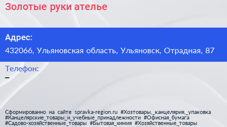 Золотые руки, ателье по адресу 432066, Ульяновская область, Ульяновск, Отрадная, 87 в дальнейшем Организация, размещена в следующих категориях: