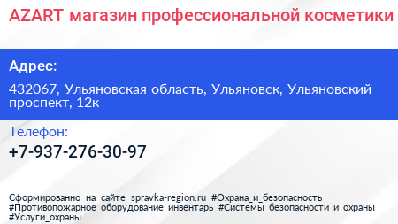 AZART, магазин профессиональной косметики по адресу 432067, Ульяновская область, Ульяновск, Ульяновский проспект, 12к в дальнейшем Организация, размещена в следующих категориях: