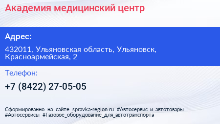 Академия, медицинский центр по адресу 432011, Ульяновская область, Ульяновск, Красноармейская, 2 в дальнейшем Организация, размещена в следующих категориях: