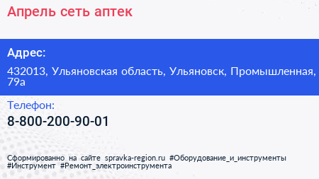 Апрель, сеть аптек по адресу 432013, Ульяновская область, Ульяновск, Промышленная, 79а в дальнейшем Организация, размещена в следующих категориях: