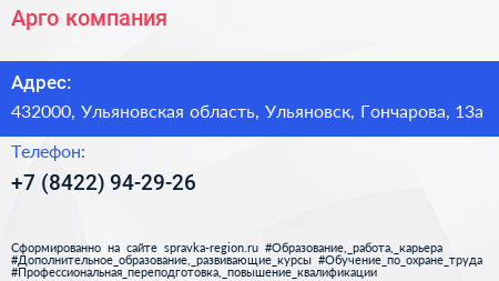 Арго, компания по адресу 432000, Ульяновская область, Ульяновск, Гончарова, 13а в дальнейшем Организация, размещена в следующих категориях: