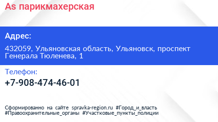 As, парикмахерская по адресу 432059, Ульяновская область, Ульяновск, проспект Генерала Тюленева, 1 в дальнейшем Организация, размещена в следующих категориях: