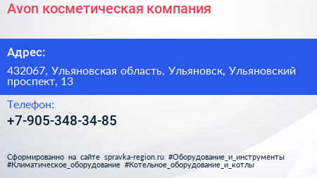 Avon, косметическая компания по адресу 432067, Ульяновская область, Ульяновск, Ульяновский проспект, 13 в дальнейшем Организация, размещена в следующих категориях: