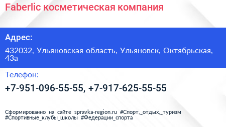 Faberlic, косметическая компания по адресу 432032, Ульяновская область, Ульяновск, Октябрьская, 43а в дальнейшем Организация, размещена в следующих категориях: