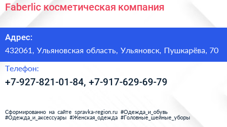 Faberlic, косметическая компания по адресу 432061, Ульяновская область, Ульяновск, Пушкарёва, 70 в дальнейшем Организация, размещена в следующих категориях: