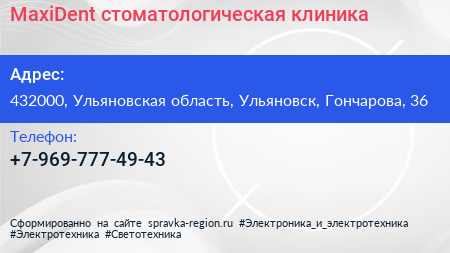MaxiDent, стоматологическая клиника по адресу 432000, Ульяновская область, Ульяновск, Гончарова, 36 в дальнейшем Организация, размещена в следующих категориях: