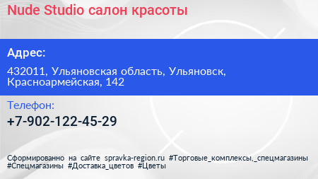 Nude Studio, салон красоты по адресу 432011, Ульяновская область, Ульяновск, Красноармейская, 142 в дальнейшем Организация, размещена в следующих категориях: