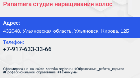 Panamera, студия наращивания волос по адресу 432048, Ульяновская область, Ульяновск, Кирова, 12Б в дальнейшем Организация, размещена в следующих категориях: